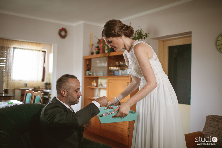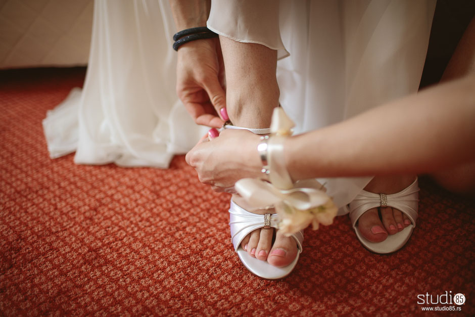 Once we were ready, my brother in law came to get me from the hotel room. Serbian tradition is that the groom’s brother, or closest male relative who is not married, comes to get the bride. It is also tradition for him to come buy the bride, which was a tradition I did not want to take part in so we skipped out on that.