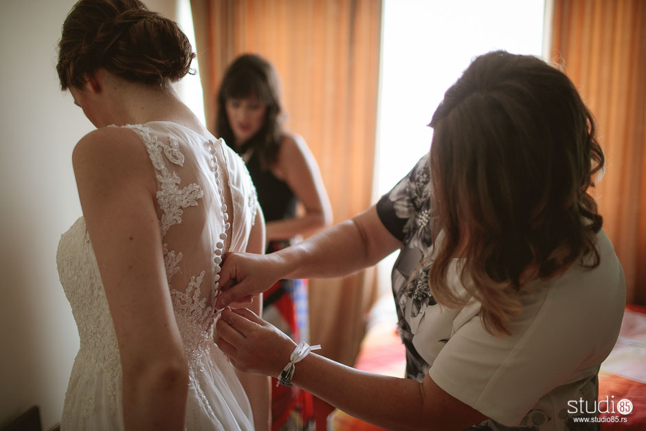 | Getting my dress buttoned by my dear friend Ivana. |