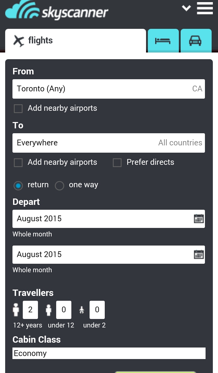 Just like Skyscanner looks at the best airplane ticket deals, it also searches for the best deals for hotels and car rentals. It is truly a one stop shop!
